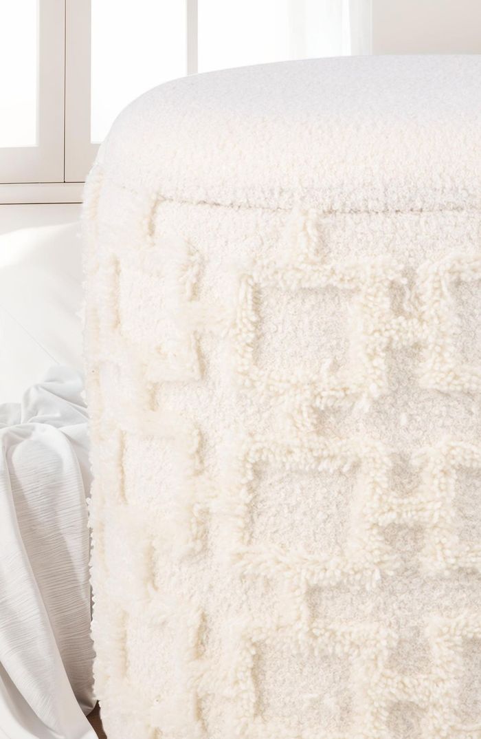 Hocker mit Stauraum Stoff Creme Sitzhocker Ottoman Rund 40 cm Modern