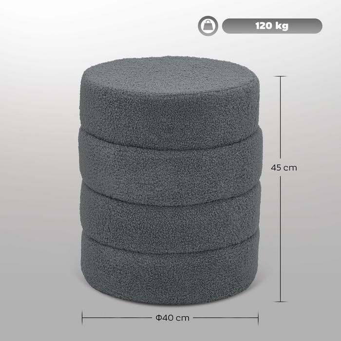 Hocker, rund, Teddyfleece, bis 120kg, Φ40x45H cm, Dunkelgrau