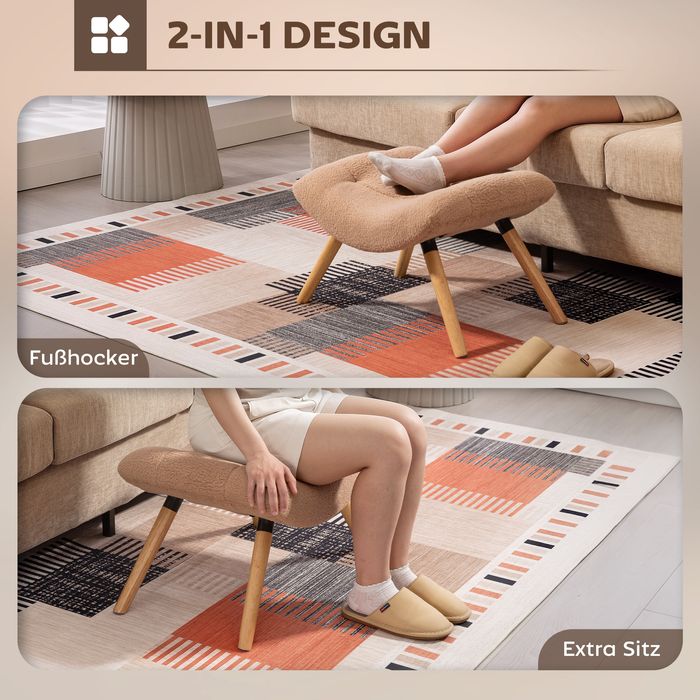 Moderner Fusshocker mit Fleece-Bezug und Holzbeinen, gepolstert, für Wohnzimmer, Schlafzimmer, Flur, Braun