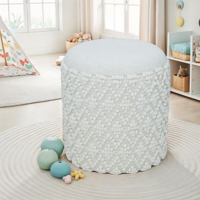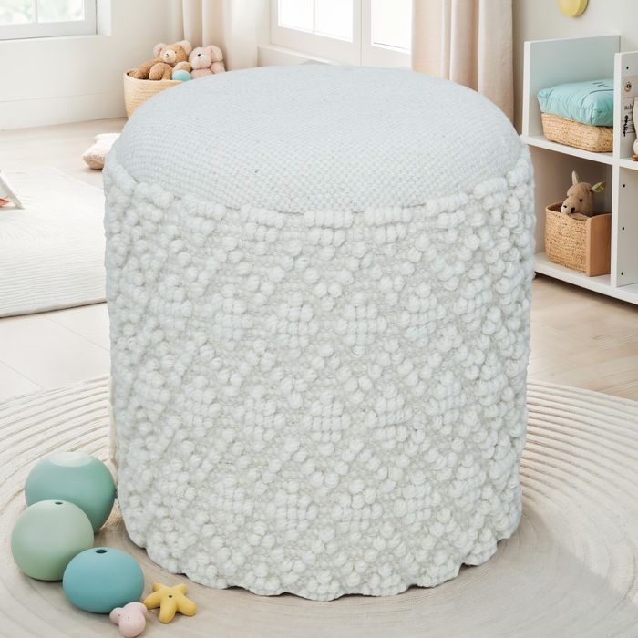 - Flauschiger Wollhocker in moderner, zeitloser Optik