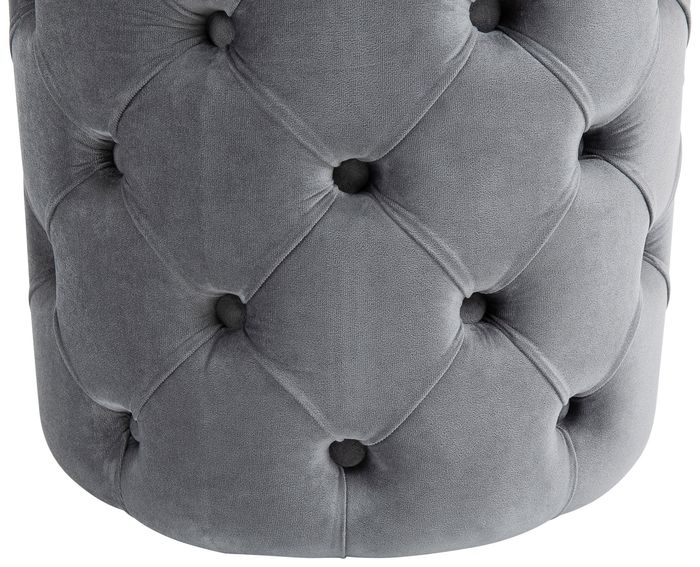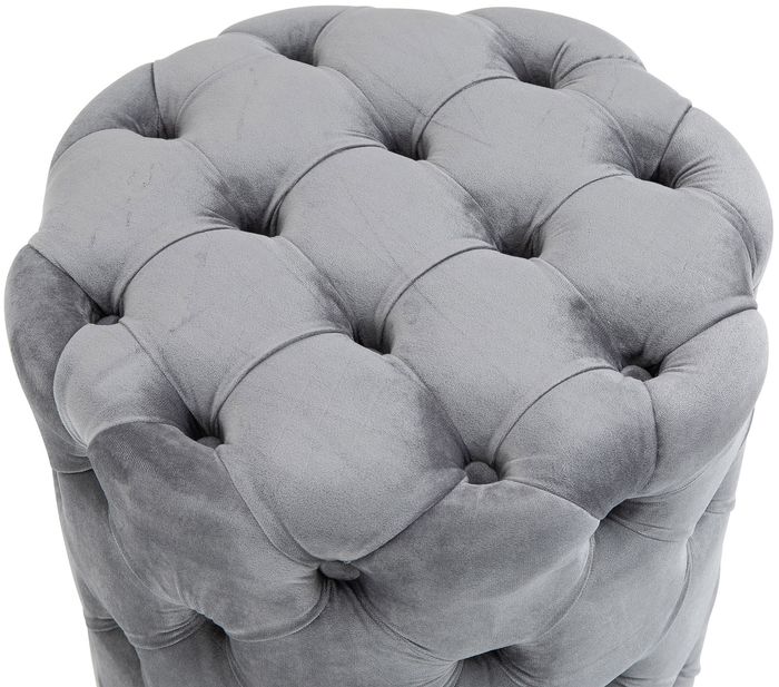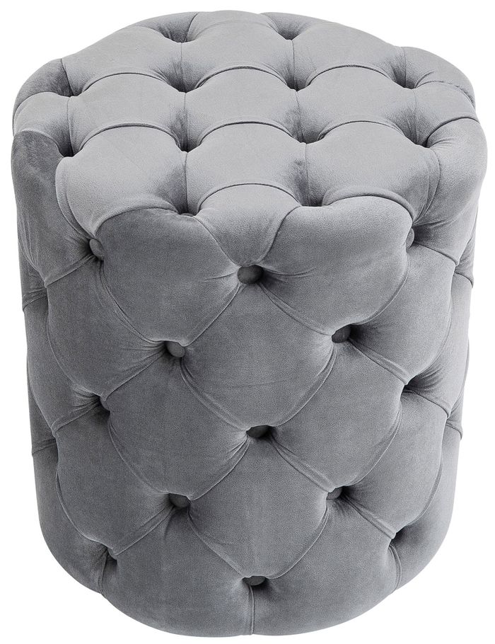 Holen Sie sich mit unserem vielseitig einsetzbaren Sitzhocker, aus hochwertigem Samt, das elegante Chesterfield Design zu sich nach Hause. Die Oberfläche des Hockers wurde komplett mit auffälligen Zierknöpfen überzogen und passt hervorragend zum zeitlosen, englischen Chesterfield Stil. Als Sitzgelegenheit oder aber auch als Fusshocker oder Couch- und Nachttisch macht er eine hervorragende Figur und verleiht jedem Ambiente einen eleganten Charme. Unter dem Gestell befinden sich Bodenschoner, die ein Zerkratzen des Bodens verhindern und dank der verarbeiteten Materialien ist der Hocker besonders pflegeleicht.