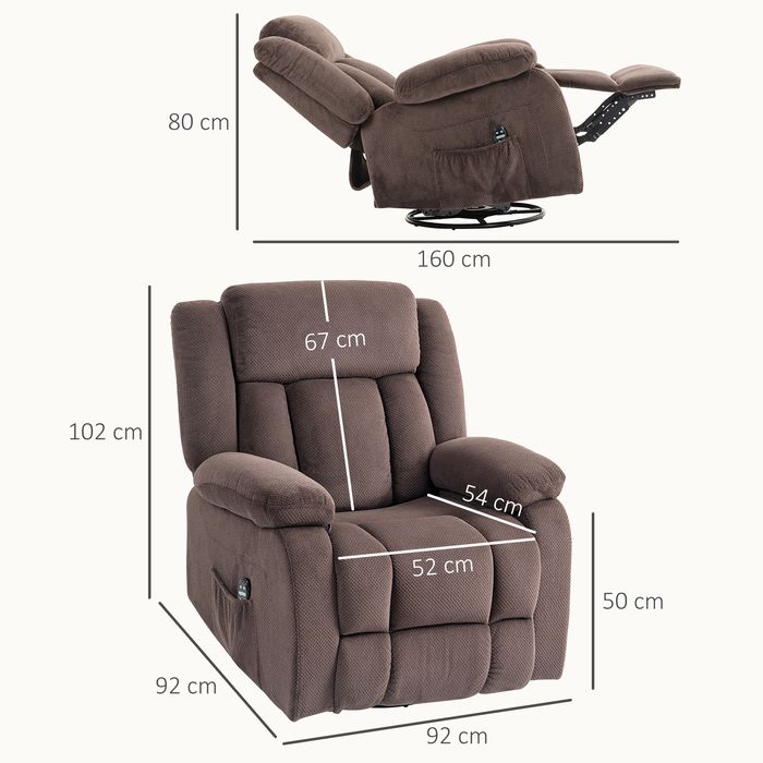Massage-Sessel, 8 Vibrationspunkte, 5 Modi, Lendenheizung, verstellbar, drehbar, Polstersessel, Braun