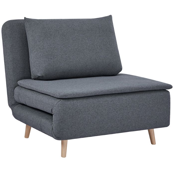 3in1 Schlafsessel, verstellbare Lehne, Buchenholzbeine, Kissen, Grau