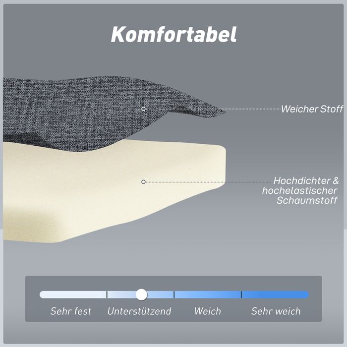 - Material: Stoff in Leinenoptik (100% Polyester), Schaumstoff, Buchenholz