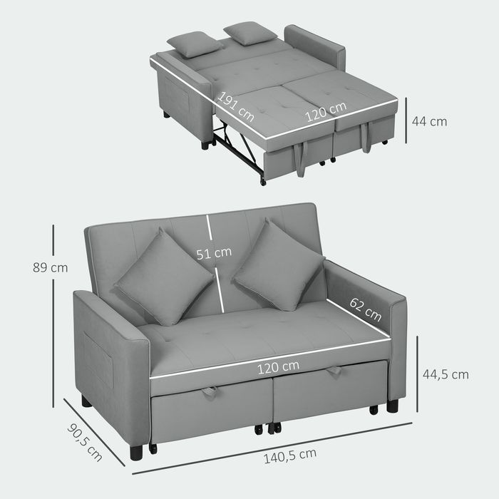 - Informationen zum Schlafsofa: Sofamasse: 140,5Lx90,5Bx89H cm. Bettmasse: 120Bx191Tx44H cm. Belastbarkeit: 240 kg. Montage erforderlich