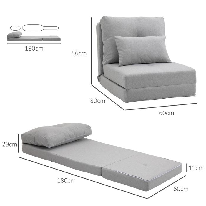 Bodensessel Klappmatratze Schlafmatte, 2-in-1-Design, abnehmbares Kissen, 60 x 80 x 56 cm, Grau
