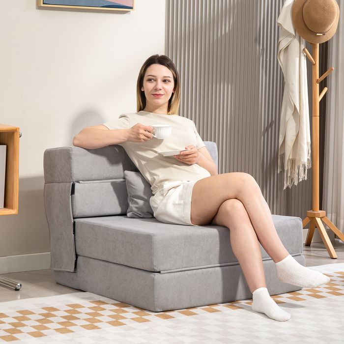 Suchen Sie nach einem Schlafsofa, um nach der Arbeit zu relaxen oder Gästen mehr Sitzmöglichkeiten zu bieten? Das Chair Bed ist eine flexible Lösung, die nahtlos von einem kuscheligen Bodensofa in eine Chaiselongue oder eine komfortable Matratze umgewandelt werden kann – perfekt für jeden Anlass. Umhüllt von weichem Flanellstoff und gefüllt mit festem Schaumstoff, bietet es erstklassigen Komfort. Ideal für kleine Wohnungen oder kuschelige Ecken, ist es die perfekte Wahl für Entspannung und Gemütlichkeit.