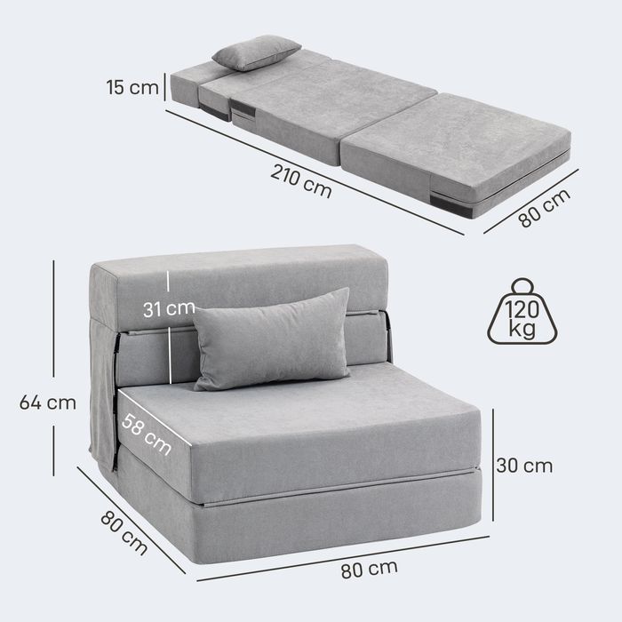 - Abmessungen: Bett: 210B x 80T x 15H cm, geklappt: 80B x 80T x 64H cm, Belastbarkeit: 120 kg, Montage nicht erforderlich.