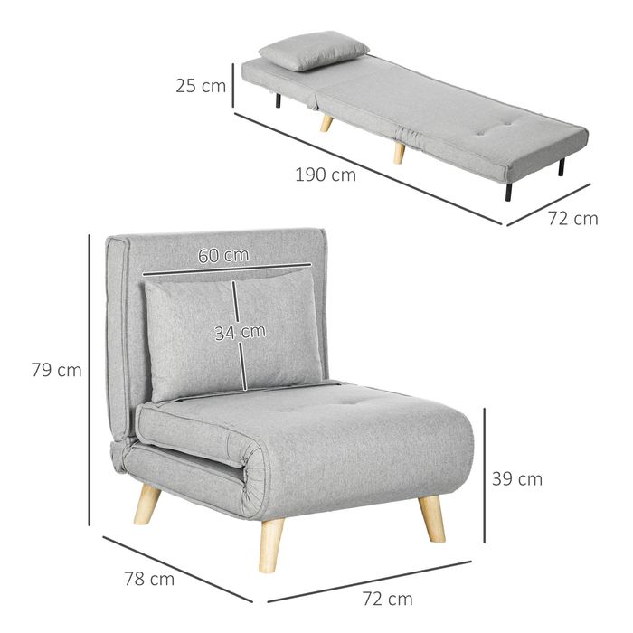 - Produktdaten des Sesselbetts: Stuhlmasse: 72Lx78Bx79H cm, Bettmasse: 72Lx190Bx25H cm, Artikelgewicht: 20 kg, Belastbarkeit: 150 kg, Einfacher Zusammenbau erforderlich