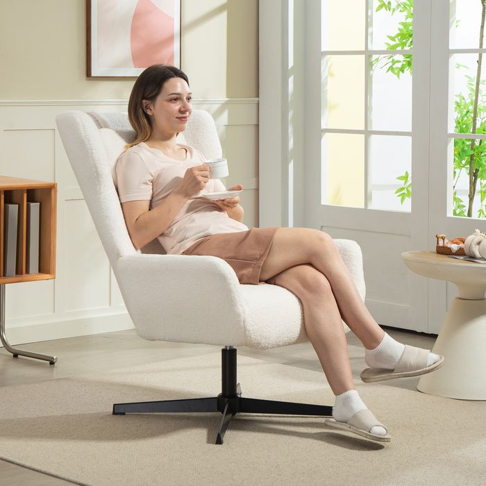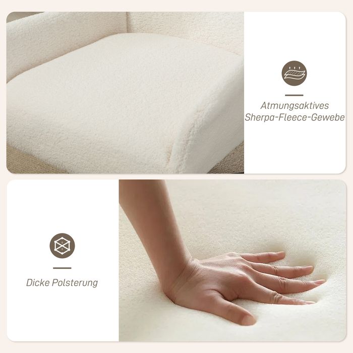 - Üppiger Komfort: Lassen Sie sich von weichem, luftigem Sherpa-Fleece-Stoff des Loungesessels umhüllen, kombiniert mit dickem Schaumstoff für dauerhaften Komfort, ideal für langanhaltende Entspannung in diesem Akzentstuhl.
