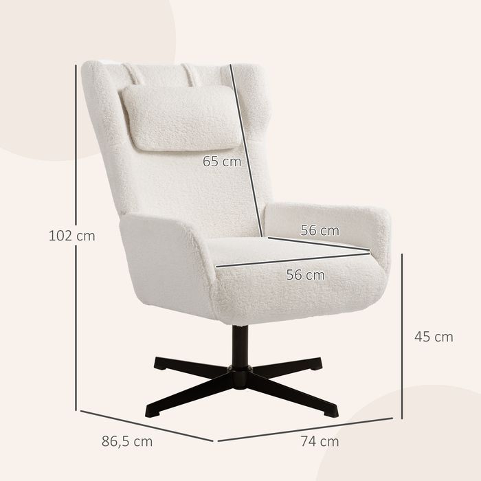 Akzentstuhl, Polstersessel mit Fleece-Bezug, Drehfuss, Metallrahmen, Cremeweiss