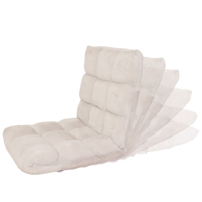 Bodensessel HWC-N43, 6 Relaxpositionen, stabiles Gestell Samt – creme-grau
