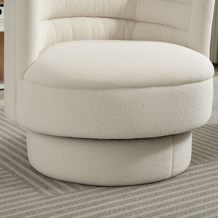 Drehbarer Polstersessel, Moderner Lounge-Sessel mit Kautschukholzrahmen, für Wohnzimmer, Schlafzimmer, Cremeweiss