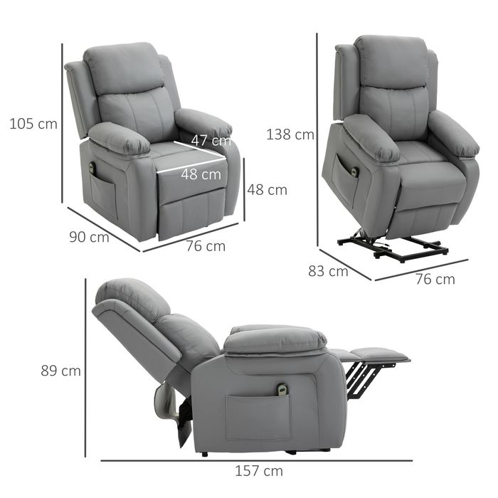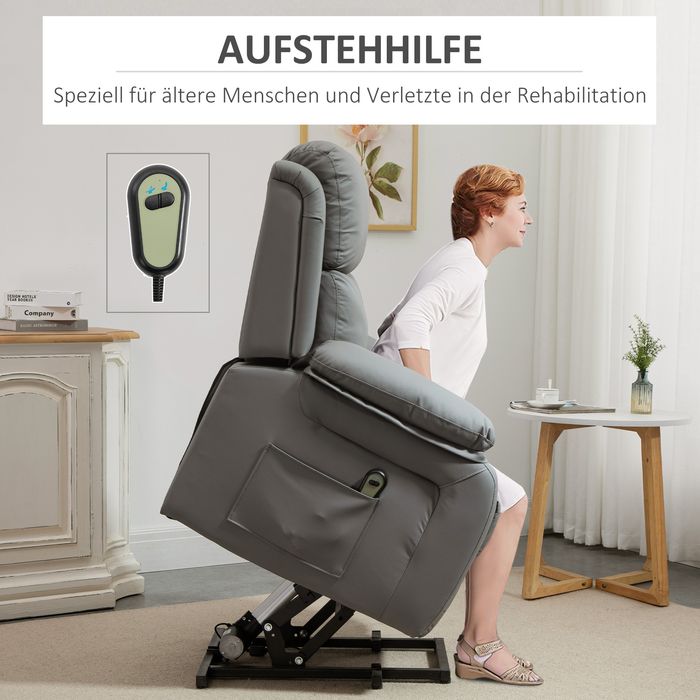 Elektrischer Aufsteh-Sessel, Fernbedienung, Kunstleder-Bezug, Polstersessel mit Aufsteh-Funktion, Grau