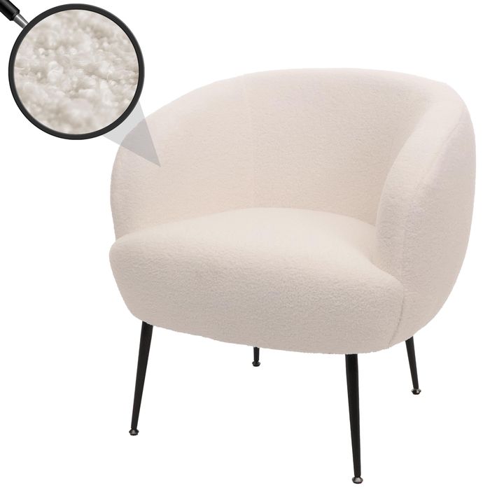 - Der Lounge-Sessel O37 überzeugt mit hochwertigem Bouclé-Stoff, dicker Polsterung und extra breiter Sitzfläche für maximalen Komfort. Abgerundete Kanten und moderne Optik machen ihn zum stilvollen Blickfang in jedem Raum.