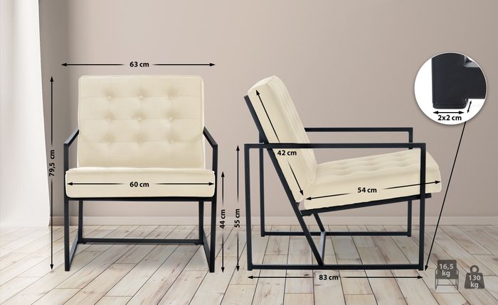 Das besondere Highlight sind die eleganten, in den Bezugsstoff eingearbeiteten Knöpfe, die dem Sessel eine raffinierte Optik verleihen. Die klaren Linien und das schlichte Design passen zu jedem Einrichtungsstil und bieten einen minimalistischen Look.