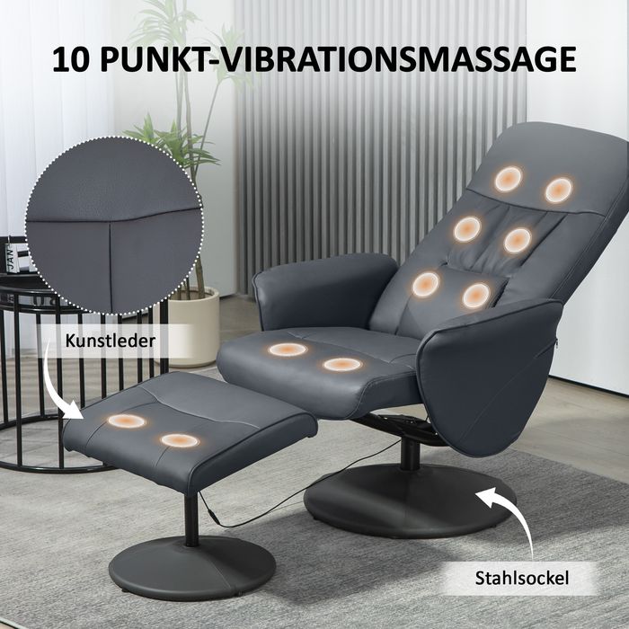 Massagesessel mit Fusshocker, Ergonomischer Stuhl mit 10 Vibrationspunkten, Kunstleder, 76 x 81 x 105 cm, Dunkelgrau
