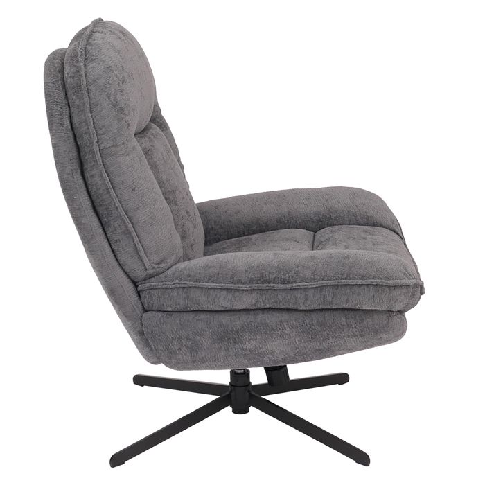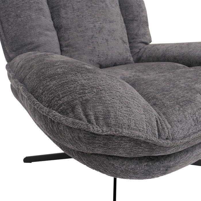 Dieser moderne Relaxsessel vereint elegantes Design mit erstklassigem Sitzkomfort und wird im Handumdrehen zum neuen Lieblingsplatz in Ihrem Zuhause. Der weiche, hochwertige Chenille-Bezug überzeugt durch seine angenehm strukturierte Oberfläche und sorgt für ein besonders komfortables Sitzgefühl. Mit einer hohen Stoffqualität von 370 g/m² bietet der Bezug nicht nur ein edles Erscheinungsbild, sondern ist zugleich pflegeleicht und langlebig - ideal für den täglichen Gebrauch. Die komfortable Polsterung mit Nosag-/Wellenfederung garantiert dauerhafte Formstabilität und hervorragenden Halt. So erleben Sie einen Sitzkomfort, der sich perfekt an Ihren Körper anpasst und auch nach längerem Gebrauch angenehm elastisch bleibt. Dank der leichten Wippfunktion lässt sich der Sessel sanft nach hinten neigen - perfekt, um einfach zu entspannen. Zusätzlich ist der Relaxsessel um 360° drehbar, wodurch Sie maximale Bewegungsfreiheit und Flexibilität geniessen, ohne den Sitzplatz wechseln zu müssen. Das stabile Metallgestell unterstreicht den zeitlosen Charakter des Designs und sorgt gleichzeitig für sicheren Stand. Der elegante 4-Stern-Fuss verleiht dem Sessel eine klare, moderne Form und rundet das stilvolle Gesamtbild ab. Integrierte Fussbodenschoner schützen empfindliche Böden zuverlässig vor Kratzern und Abnutzung. Mit einer maximalen Dauerbelastbarkeit von 110 kg bietet der Sessel Stabilität und Langlebigkeit in einem.