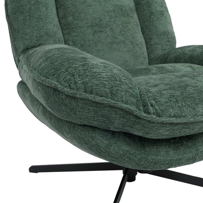 Dieser moderne Relaxsessel vereint elegantes Design mit erstklassigem Sitzkomfort und wird im Handumdrehen zum neuen Lieblingsplatz in Ihrem Zuhause. Der weiche, hochwertige Chenille-Bezug überzeugt durch seine angenehm strukturierte Oberfläche und sorgt für ein besonders komfortables Sitzgefühl. Mit einer hohen Stoffqualität von 370 g/m² bietet der Bezug nicht nur ein edles Erscheinungsbild, sondern ist zugleich pflegeleicht und langlebig - ideal für den täglichen Gebrauch. Die komfortable Polsterung mit Nosag-/Wellenfederung garantiert dauerhafte Formstabilität und hervorragenden Halt. So erleben Sie einen Sitzkomfort, der sich perfekt an Ihren Körper anpasst und auch nach längerem Gebrauch angenehm elastisch bleibt. Dank der leichten Wippfunktion lässt sich der Sessel sanft nach hinten neigen - perfekt, um einfach zu entspannen. Zusätzlich ist der Relaxsessel um 360° drehbar, wodurch Sie maximale Bewegungsfreiheit und Flexibilität geniessen, ohne den Sitzplatz wechseln zu müssen. Das stabile Metallgestell unterstreicht den zeitlosen Charakter des Designs und sorgt gleichzeitig für sicheren Stand. Der elegante 4-Stern-Fuss verleiht dem Sessel eine klare, moderne Form und rundet das stilvolle Gesamtbild ab. Integrierte Fussbodenschoner schützen empfindliche Böden zuverlässig vor Kratzern und Abnutzung. Mit einer maximalen Dauerbelastbarkeit von 110 kg bietet der Sessel Stabilität und Langlebigkeit in einem.