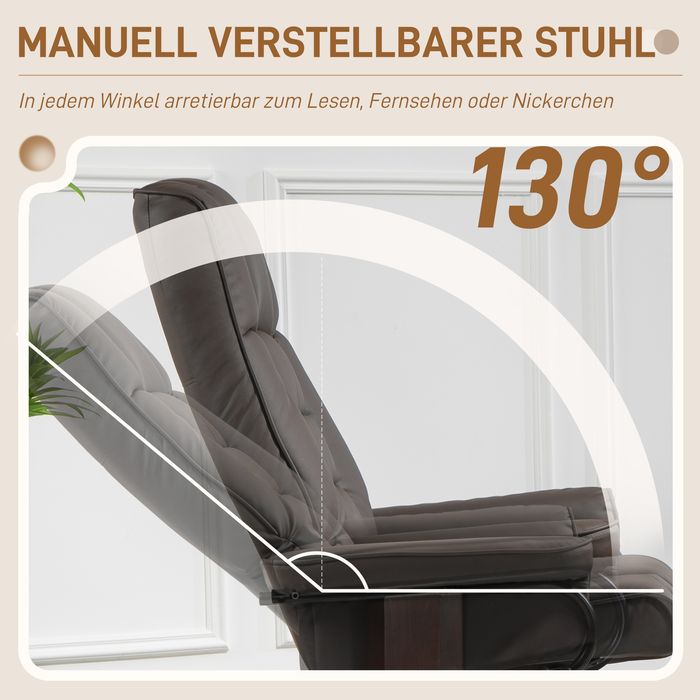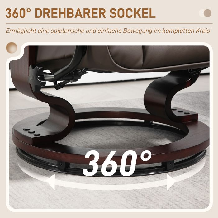 Relaxsessel mit Hocker, drehbar & neigbar, Kunstlederbezug, bis 150 kg, Holzgestell, Braun