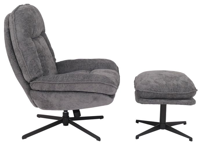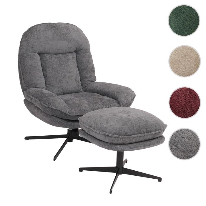 Relaxsessel mit Hocker HWC-P32, Nosagfederung, drehbar Metall Stoff/Textil Chenille (370 g/m²) – grau