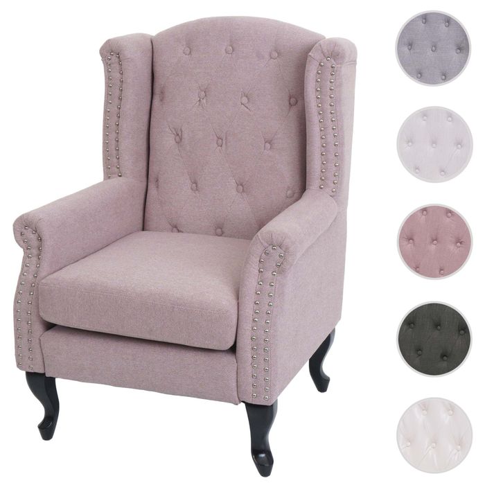 Sessel Chesterfield, wasserabweisend Stoff/Textil – hellrosa ohne Ottomane