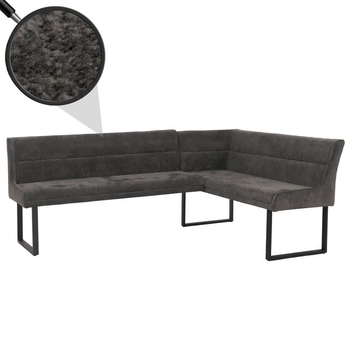 Eckbank HWC-O81, Öko-Tex (310g/m²) Chenille Stoff/Textil Metall 210x159cm – dunkelgrau