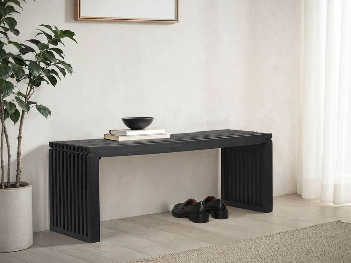 - Sitzbank aus massivem Akazienholz in edlem Schwarz