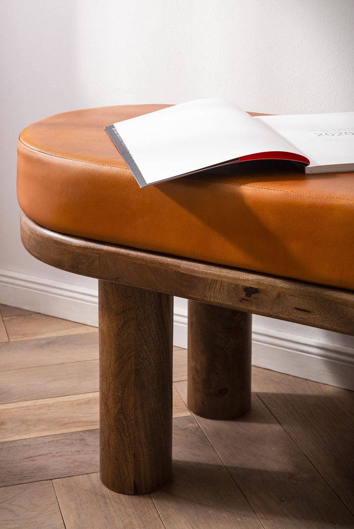 Sitzbank Echtleder Holz Massiv 140 cm Flurbank Polsterbank Bank Braun