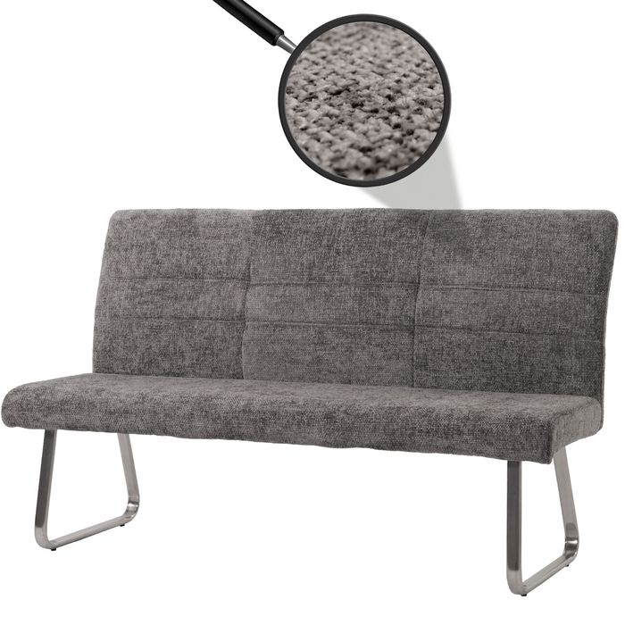 Sitzbank HWC-G55, Edelstahl gebürstet Stoff/Textil Chenille Öko-Tex, 180cm – dunkelgrau