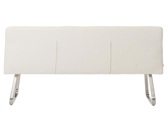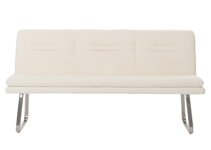 - Die Sitzbank H70 überzeugt mit modernem Bouclé Stoffbezug, eleganten Ziernähten und abgerundeten Kanten. Sie bietet Platz für drei Personen, eine komfortable Rückenlehne und steht auf gebürsteten Edelstahlfüssen mit verstellbaren Fussbodenschonern.