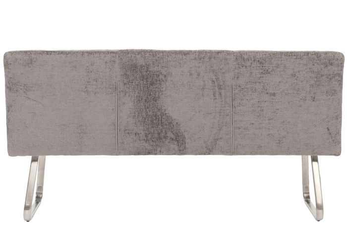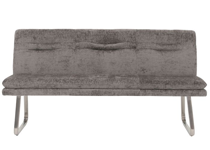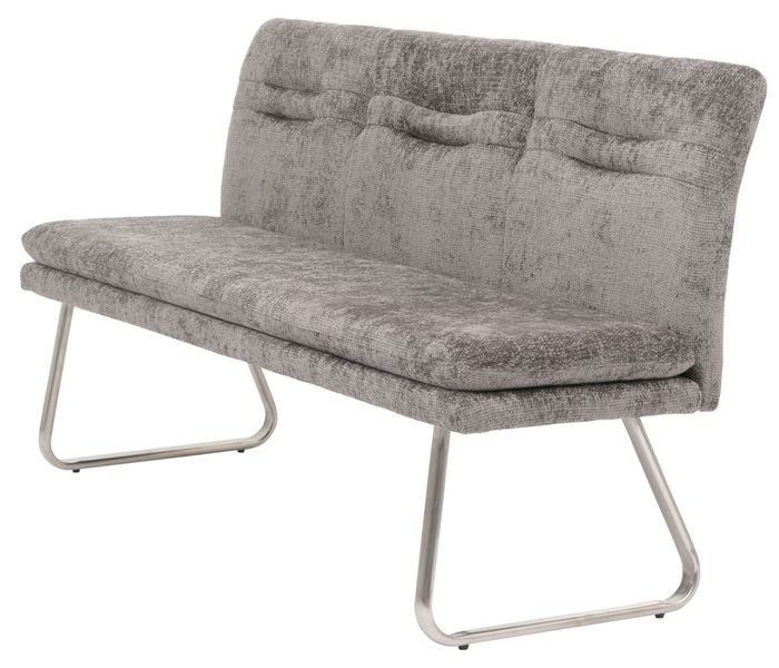 - Die Sitzbank H70 überzeugt mit modernem Chenille Stoffbezug, eleganten Ziernähten und abgerundeten Kanten. Sie bietet Platz für drei Personen, eine komfortable Rückenlehne und steht auf gebürsteten Edelstahlfüssen mit verstellbaren Fussbodenschonern.