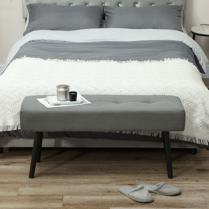 Erneuern Sie Ihre Umgebung mit der HOMCOM Bettbank! Erleben Sie höchsten Komfort mit der 13 cm starken, Schaumstoff-gepolsterten, in weichem Cord eingefassten Oberseite und eleganter Steppung. Die pulverbeschichteten Stahlbeine der Sitzbank garantieren eine Belastbarkeit bis 220 kg – perfekt als Dielenbank, Bettende-Bank oder Zusatzsitz in allen Räumen.