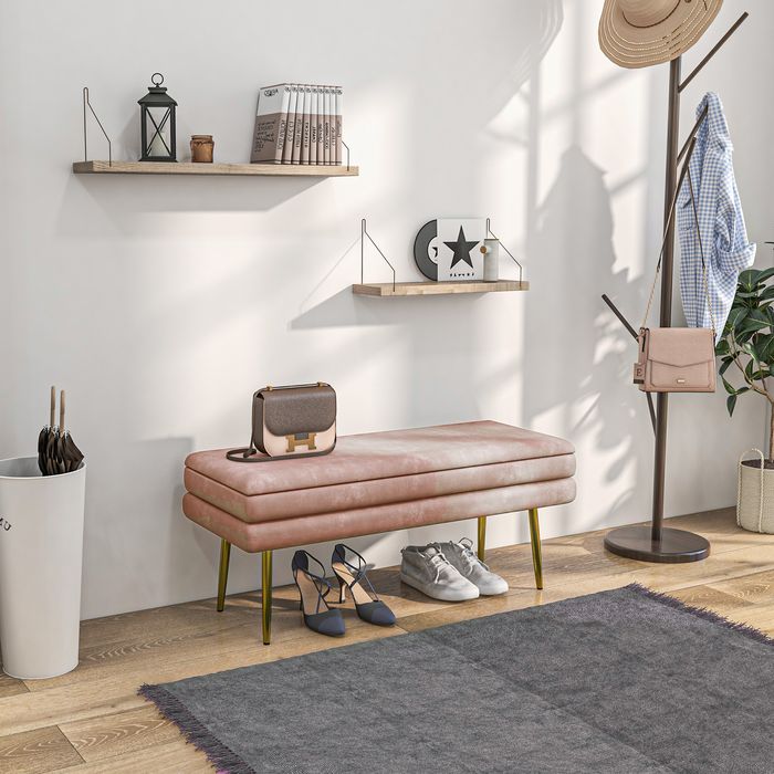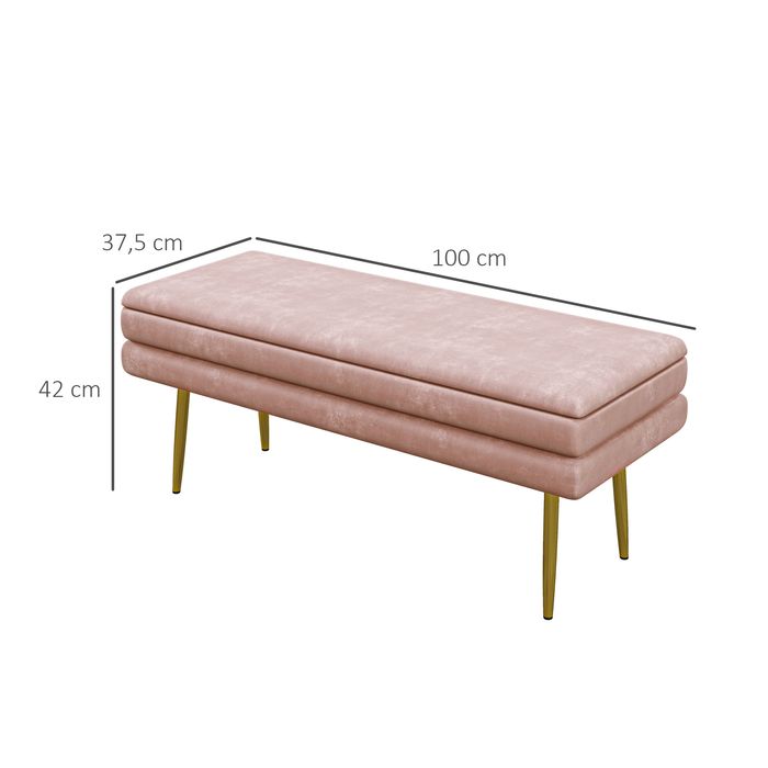 Sitzbank Polsterbank, mit Stauraum, Stahl, 100 x 37,5 x 42 cm, Rosa