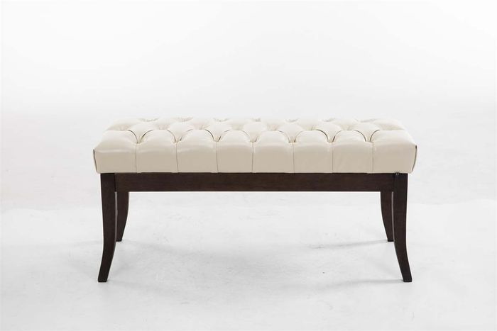 Unsere Design Sitzbank Ramses Kunstleder überzeugt als bequem gepolsterte Sitzgelegenheit im edlen Chesterfield-Design! Der aufwendig gesteppte Kunstlederbezug aus 100% Polyurethan verleiht dieser Sitzbank einen exklusiven Look. Das dekorative Möbelstück integriert sich flexibel und formschön in jeden Raum. Ob im Wohnzimmer, im Flur oder im Esszimmer - der individuellen Gestaltung sind keine Grenzen gesetzt! Die fein geschwungenen Holzbeine unterstreichen die edle Optik und sorgen für die nötige Stabilität. Auch für die Farbzusammenstellung ist Kreativität gefragt: Suchen Sie sich aus unseren angebotenen Farben die Richtige aus. Eine schöne und einfache Kombinierbarkeit bieten die angebotenen Grössen, denn die Sitzbank Ramses ist in drei unterschiedlichen Breiten erhältlich.