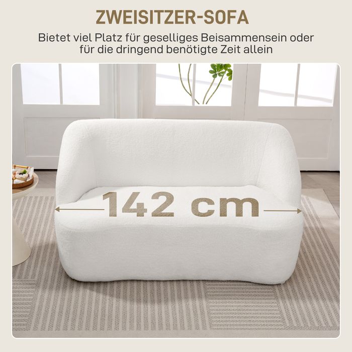 2-Sitzer-Sofa, Fleece-Bezug, für Wohnzimmer, Schlafzimmer, Homeoffice, Cremeweiss