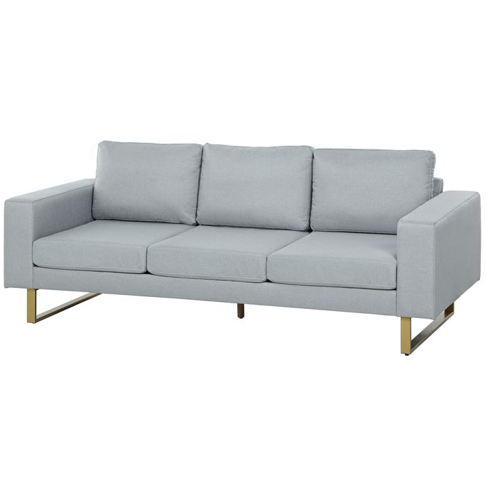 3-Sitzer-Sofa, Couch mit Vollholzrahmen, Metallbeine, schlichtes Design, Hellgrau