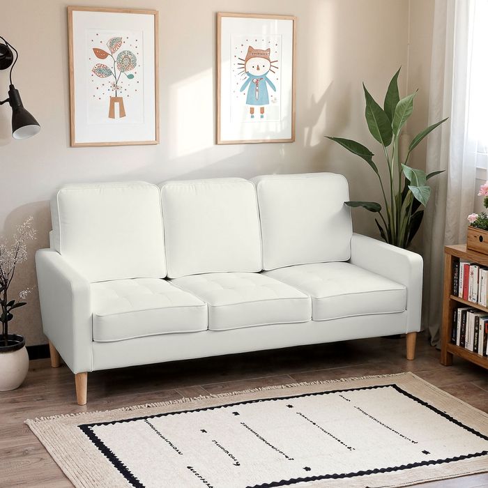 - Zeitloser Stil: Mit einem Überzug aus weichem Stoff, klassischer Rautensteppung und Beinen aus Naturholz verleiht dieses 3 Sitzer Sofa jedem modernen oder minimalistischen Raum eine unaufdringliche Eleganz und hebt das Ambiente Ihres Wohnzimmers auf ein neues Niveau
