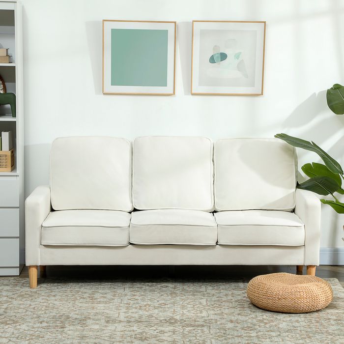 Erleben Sie das luxuriöse Gefühl des HOMCOM 3-Sitzer-Sofas, dessen 12 cm dicke Sitzpolster und 17 cm dicke Rückenlehne höchsten Komfort bieten. Die Beine aus Naturholz verleihen ihm eine moderne, elegante Note, ideal für minimalistische Räume. Das robuste Kautschukholzgestell hält bis zu 360 kg und bietet somit dauerhafte Stabilität für verschiedene Gelegenheiten.