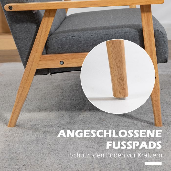 - Modern-Design: Poliertes Gestell in Naturfarben mit weicher Polsterung und einem Obermaterial aus Leinen. Knopflöcher auf der Rückenlehne runden das Gesamtbild ab.