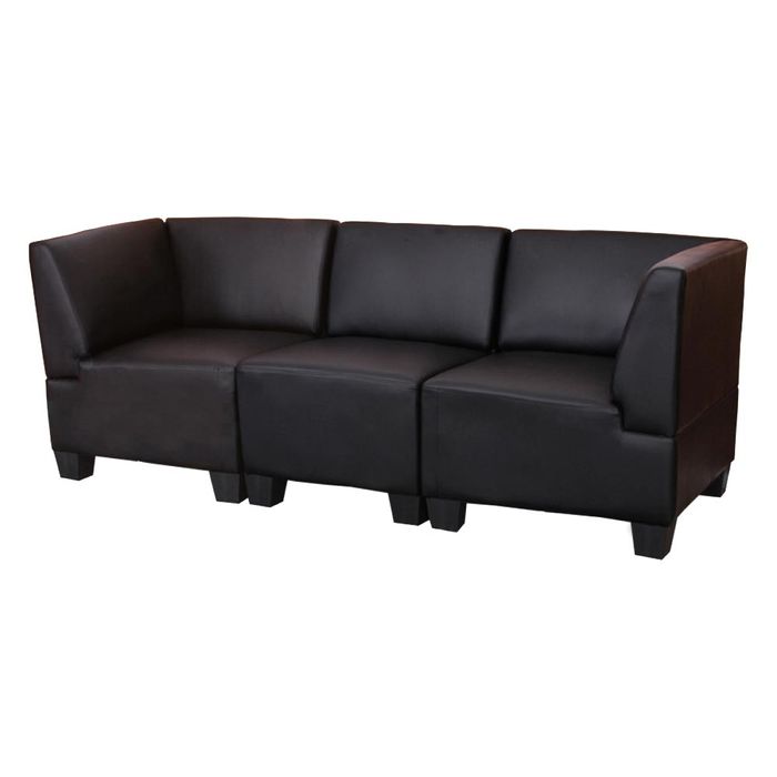 Modular 3-Sitzer Sofa Couch Lyon, Kunstleder schwarz, hohe Armlehnen