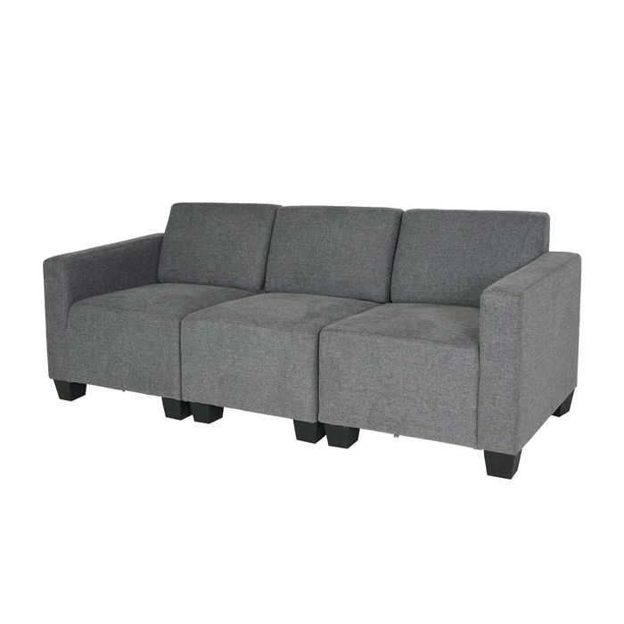 Modular 3-Sitzer Sofa Couch Lyon, Stoff/Textil grau