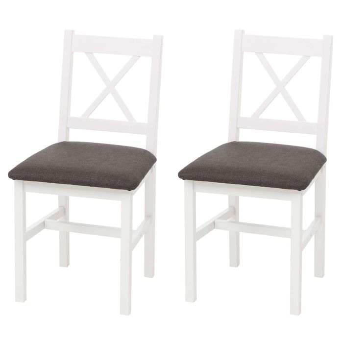 2er-Set Esszimmerstuhl HWC-F77, Massiv-Holz Stoff Landhaus – weiss, Polster grau