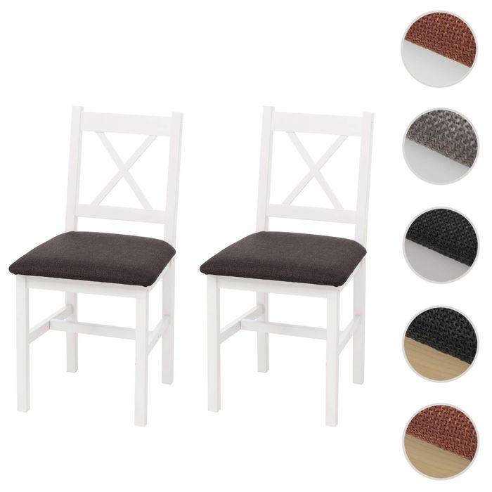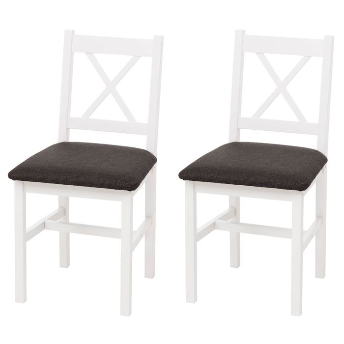 2er-Set Esszimmerstuhl HWC-F77, Massiv-Holz Stoff Landhaus – weiss, Polster schwarz