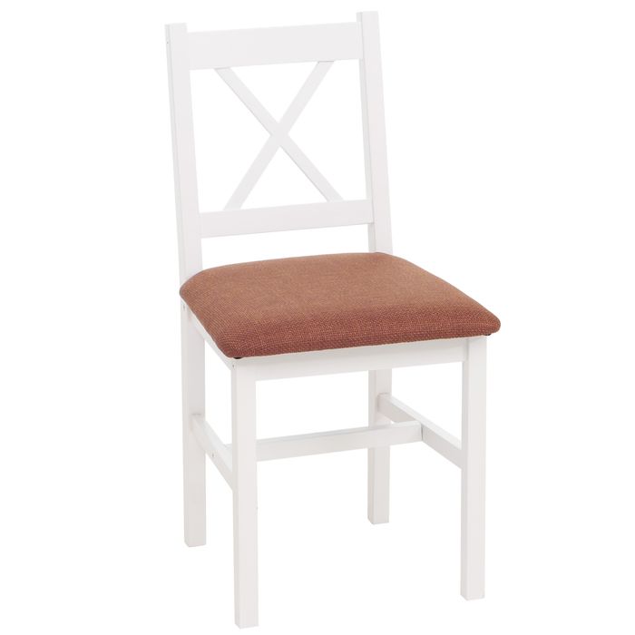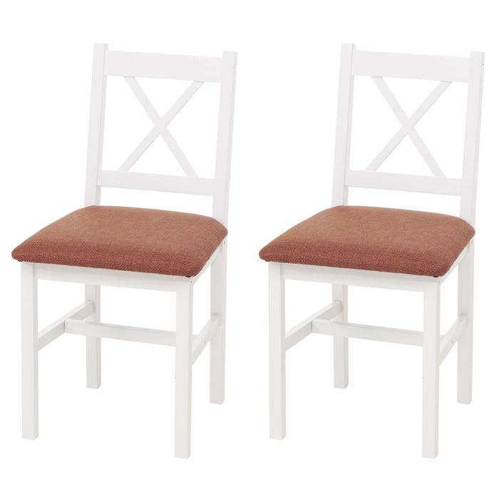2er-Set Esszimmerstuhl HWC-F77, Massiv-Holz Stoff Landhaus – weiss, Polster terrakotta