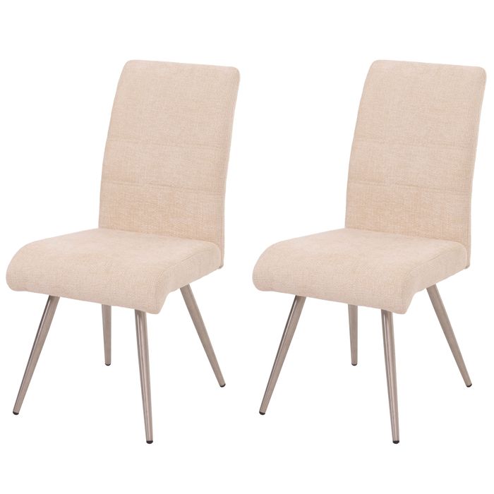 2er-Set Esszimmerstuhl HWC-G55, Küchenstuhl Lehnstuhl, Edelstahl gebürstet Stoff/Textil Chenille Öko-Tex - creme