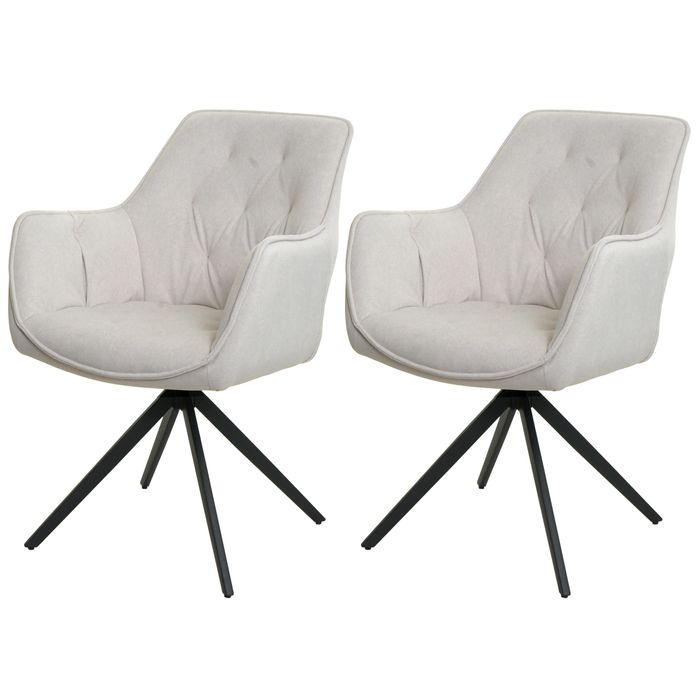 2er-Set Esszimmerstuhl HWC-L80, Küchenstuhl Polsterstuhl Stuhl mit Armlehne, drehbar, Metall Stoff/Textil - creme-beige