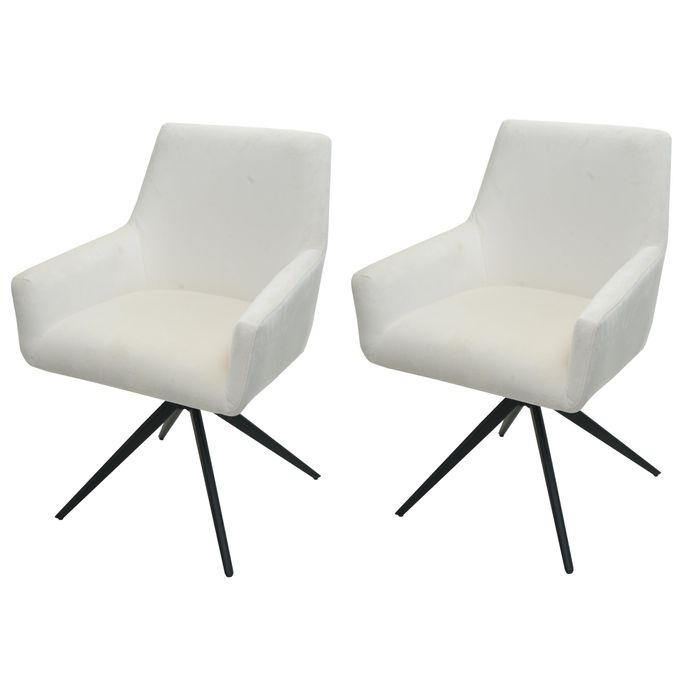 2er-Set Esszimmerstuhl HWC-L91, drehbar Auto-Position Stoff/Textil - creme-beige