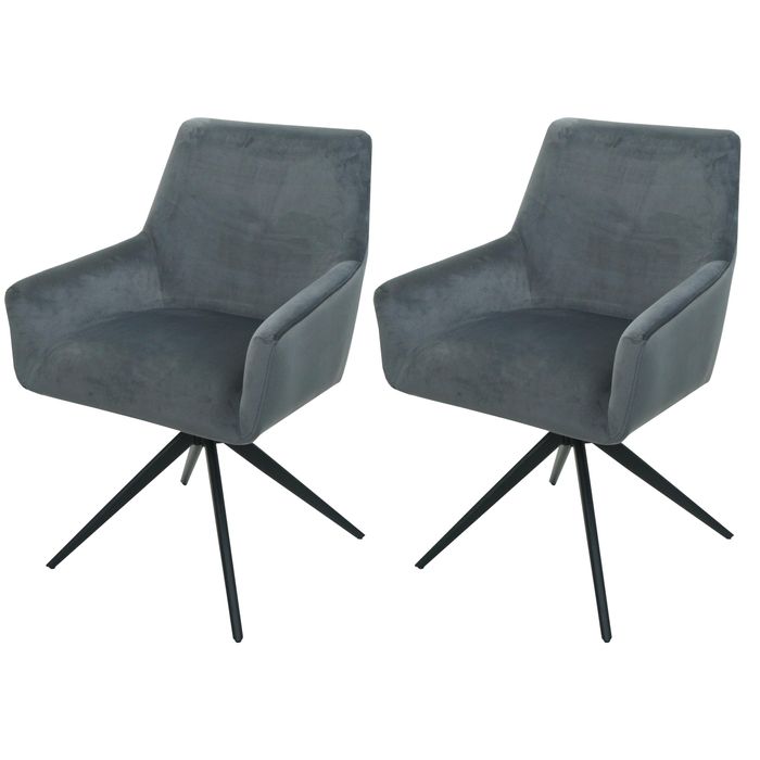 2er-Set Esszimmerstuhl HWC-L91, drehbar Auto-Position Stoff/Textil - dunkelgrau