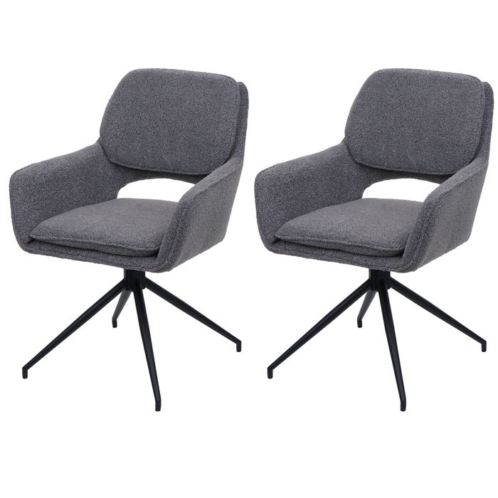 2er-Set Esszimmerstuhl HWC-N74, Küchenstuhl, drehbar Auto-Return, Stoff Bouclé (540g/m²) Öko-Tex - grau